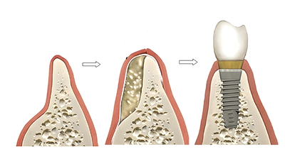Az elégtelen csontmennyiség gyakran lehetetlenné teszi az implantátumok beültetését. Ezen segítenek a különböző csontpótlási technikák. A bepótolt anyag származhat a páciens saját testéből vett csontból, vagy használhatunk műcsontot. Saját csontot főleg az állkapocs teste és felhágó ága találkozásánál lévő területből nyerünk. Gyakrabban választjuk a gyári termékeket, melyekkel egyszerűbb a műtét kivitelezése, és nem kell egy újabb vágást ejtenünk a szájban. Bármely megoldást választjuk, az implantációnál leírt procedúrákat végig kell csinálnunk (kivizsgálás, góctalanítás, stb.), majd a teljesen egészséges és gyulladásmentes területre lehet a pótlást beültetni. A pótolt csont nagyon lassan alakul át saját, teljes értékű csonttá. Kötőszöveteink lényegesebben gyorsabban regenerálódnak, ami miatt esetleg bele is tudna nőni az új csontnak szánt területbe, emiatt egy biológiai membránnal -amely idővel spontán lebomlik- tartjuk távol a kötőszöveti sejteket a területtől úgy, hogy a pótolt csontot hermetikusan befedjük vele. Kisebb mennyiség esetén történhet az implantációval egyszerre, nagyobb hiányok esetén külön első műtétben végezzük a csontpótlást és hónapokkal később helyezzük az új csontba az implantátumotot.