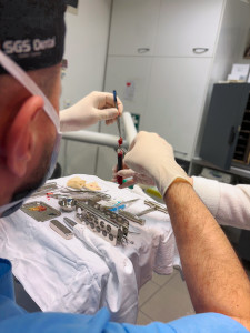 A hiányok pótlásának legmodernebb és legpraktikusabb megoldása. Napjainkban elég közismert és széles körben elfogadott pótlási lehetőség. A sikeres implantációnak több feltétele van. A legfontosabb szempont a higiénia és a gócmentesség. Csak a teljesen tiszta, gyulladásoktól mentes szájüregben lehet kockázatmentesen elvégezni a műtétet. Mint minden gyógyulási folyamatnál, így itt is igaz, hogy a legkisebb gyulladás és a kevésbé makulátlan környezet is nagyban rontja az implantáció sikerességét. Ezért első lépésben mindig góctalanítunk, illetve helyreállítjuk a szájüreg tökéletes higiéniáját. Ez a folyamat a fogkő eltávolítása, a rosszul elvégzett gyökértömések korrekciója, a pontatlan tömések, pótlások kijavítása, a betört gyökerek kivétele és hasonló, a rendbetételhez szükséges beavatkozások sorozatából áll. Miután ezeken pontról pontra végigmentünk, jöhet a következő lépés, maga a beültetés. A megfelelő csontkínálat alapfeltétel. Ha ez nem áll rendelkezésre, akkor sincs minden veszve, mert csontpótlással sokszor tudunk megoldást találni az elsőre kilátástalannak tűnő esetekben is. Már a tervezési szakaszban egyeztetünk a várt eredményről és a lehetőségekről, amikkel ezt el lehet érni. Átbeszéljük, hogy az adott esetben hány darab és milyen helyzetű implantátumra lesz szükség. A műtétet helyi érzéstelenítésben végezzük, a várt megrázó élmény helyett általában meglepően kismértékű kellemetlenségről számolnak be pácienseink. Miután beültettük a csontba az implantátumokat, jön a gyógyulási-becsontosodási szakasz, ami 3 hónapot igényel. Azért kell ennyi idő, mert a csontjaink lassan regenerálódó szövetek, ezt a folyamatot nem tudjuk felgyorsítani. A túl korai megterheléssel a tökéletes becsontosodást nem tudjuk garantálni, ami az implantátumok tartósságát jelentősen lecsökkenti. Ez idő alatt minden mechanikai terhelést kerülünk, ami az implantátumokat érheti. Utána kerülhet rájuk a felépítmény. Ezek fix pótlások (hidak, koronák) tartó pillérei, vagy kivehető pótlások (protézisek) helyben tartását elősegítő eszközök lehetnek. Mindkét esetben a felépítmény rögzítését követően megtanítjuk betegeinket a későbbi tökéletes szájhigiénia fenntartásához szükséges eszközök ismeretére és használatára. Az ilyen metodika szerint végigvitt implantációknál minimális a komplikációk kockázata. A beültetésre jelentkezők nem fogászati jellegű problémáikkal mindig számolni kell a tervezési szakaszban. Nincs olyan betegség vagy állapot, ami kizárja az implantáció lehetőségét, de sok olyan helyzet van, ami fokozza a rizikófaktorokat, pl. cukorbetegség, súlyos csontritkulás. Ilyen esetekben mindig az alapbetegséget kezelő kollégával közösen állítjuk fel a kezelési tervet és mérlegeljük az implantáció kockázatát.